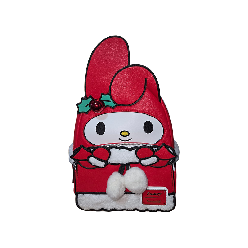 Loungefly x Sanrio My Melody Winter Mini Backpack. This officially licensed Sanrio mini backpack is part of a holiday-themed collection.