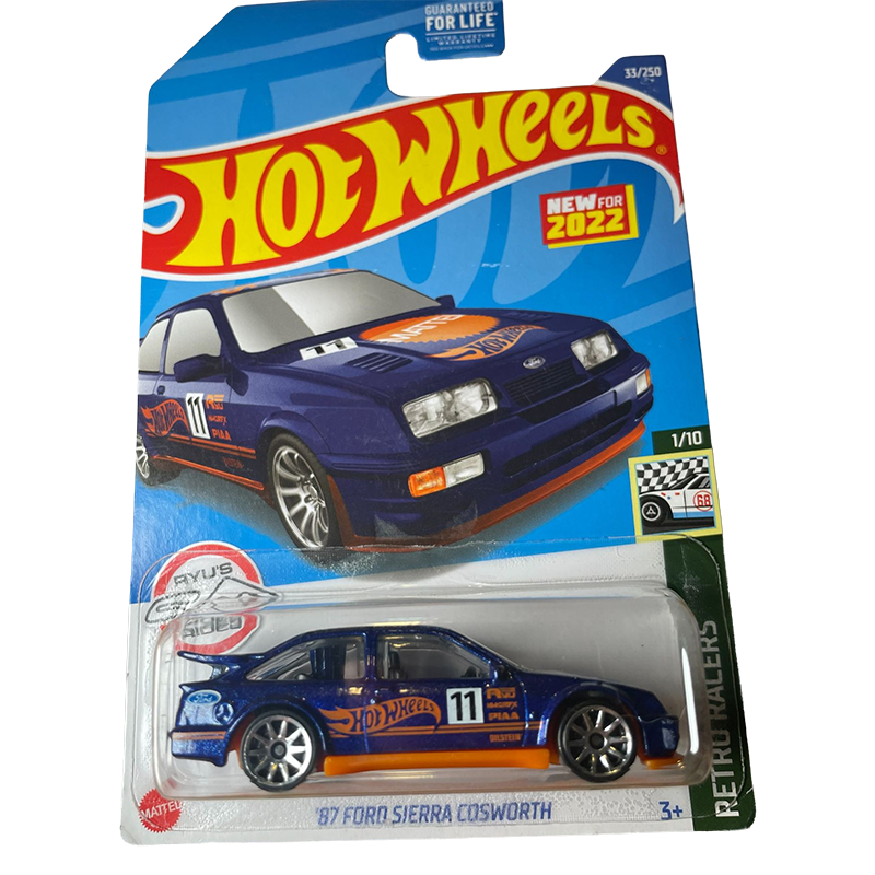 Hot Wheels '87 Ford Sierra Cosworth is part of the 2022 Retro Racers series (item number 33/250).