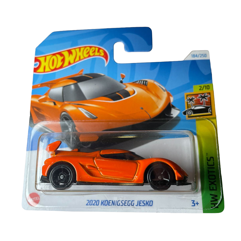 Hot Wheels 2020 Koenigsegg Jesko in orange, which is part of the 2024 HW Exotics series (2/10).