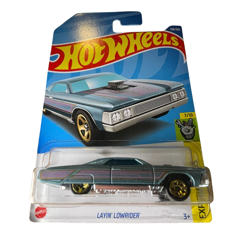 Hot Wheels Layin' Lowrider, specifically the blue variant from the 2022 HW Experimotors