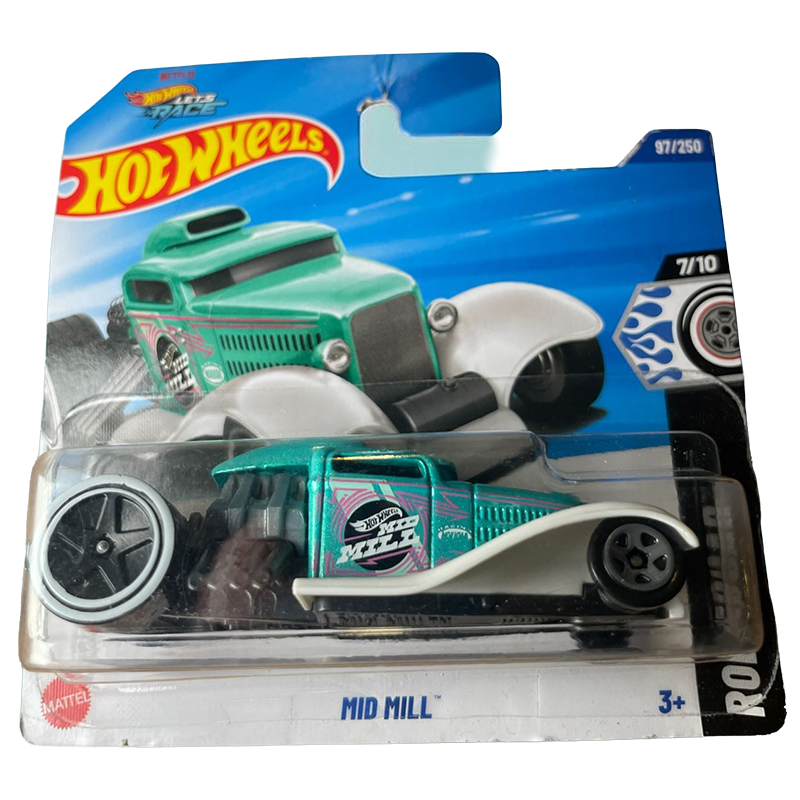 Hot Wheels Mid Mill, a 1:64 scale die-cast metallic red custom hot rod. This specific model is part of the 2025 Rod Squad series
