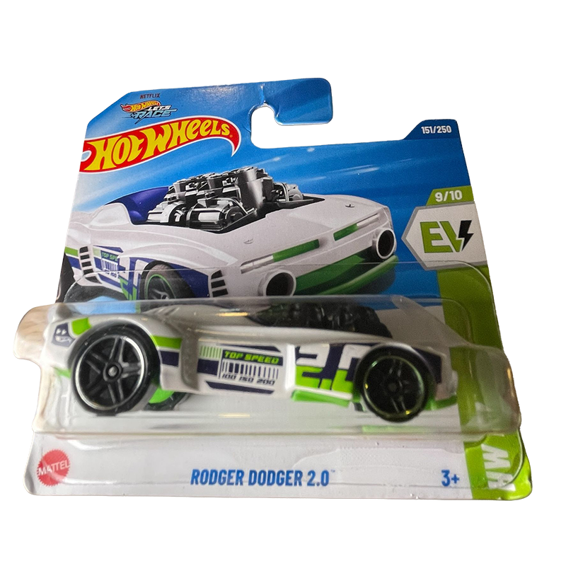 Hot Wheels Rodger Dodger 2.0, part of the 2025 Mainline series. This specific model is a futuristic, electric vehicle (EV) reimagining of the classic 1974 Rodger Dodger muscle car.